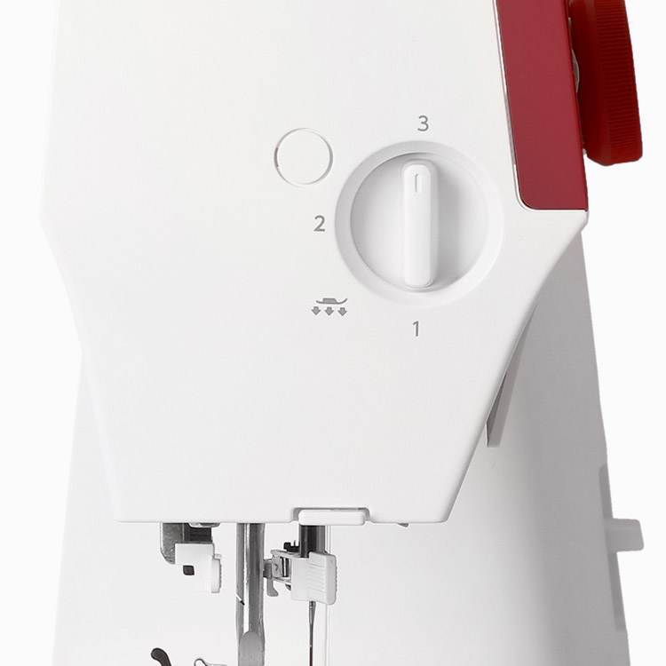 • Podesiv pritisak stopice u 3 koraka, što je veoma korisno kada se prelazi sa tankih materijala na deblje, višeslojne ili zahtjevnije tkanine.